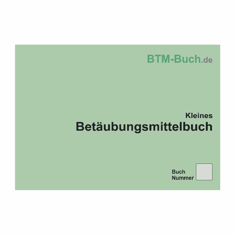 Kleines BTM Betäubungsmittel Buch, zur kompakten Dokumentation der Betäubungsmittel-Verbrauche, zum Beispiel auf Hausbesuchen, als Gedächnisstütze zum Nachtrag in das BTM Buch, mit 32 Seiten, in Heftform mit Abheftösen, grün, DIN A5 quer.
